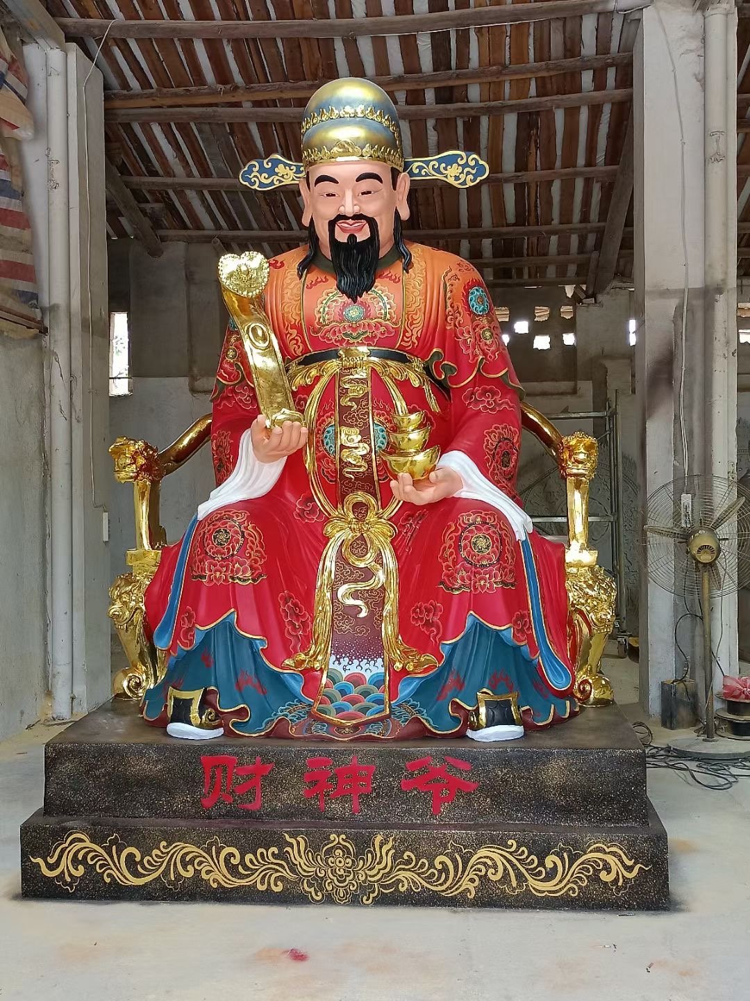 God of Wealth Painted Wood Carving